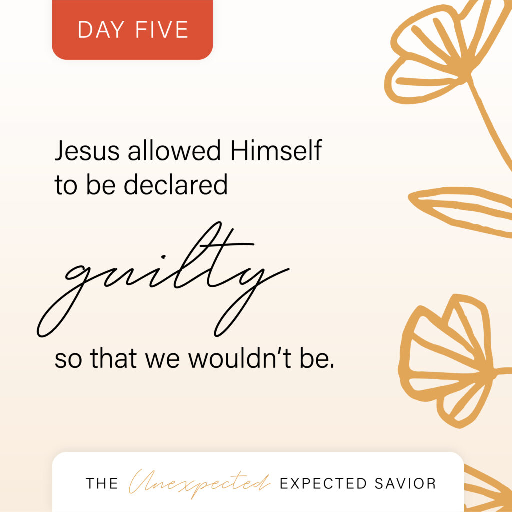 Through it all, the One who stopped the wind and rain didn’t raise a hand to stop the spittle they rained down upon him. The One who cast out demons didn’t cast away the ones who dared to strike Him. And the One they declared guilty continued steadfast in His mission to take the punishment for their sins.