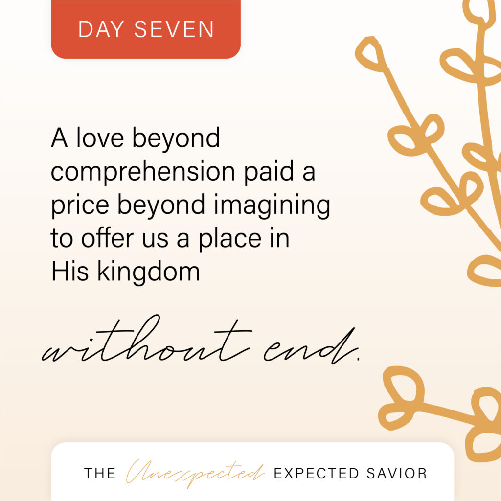 But God did. With a love beyond comprehension, He paid a price beyond imagining to offer us a place in His kingdom without end.